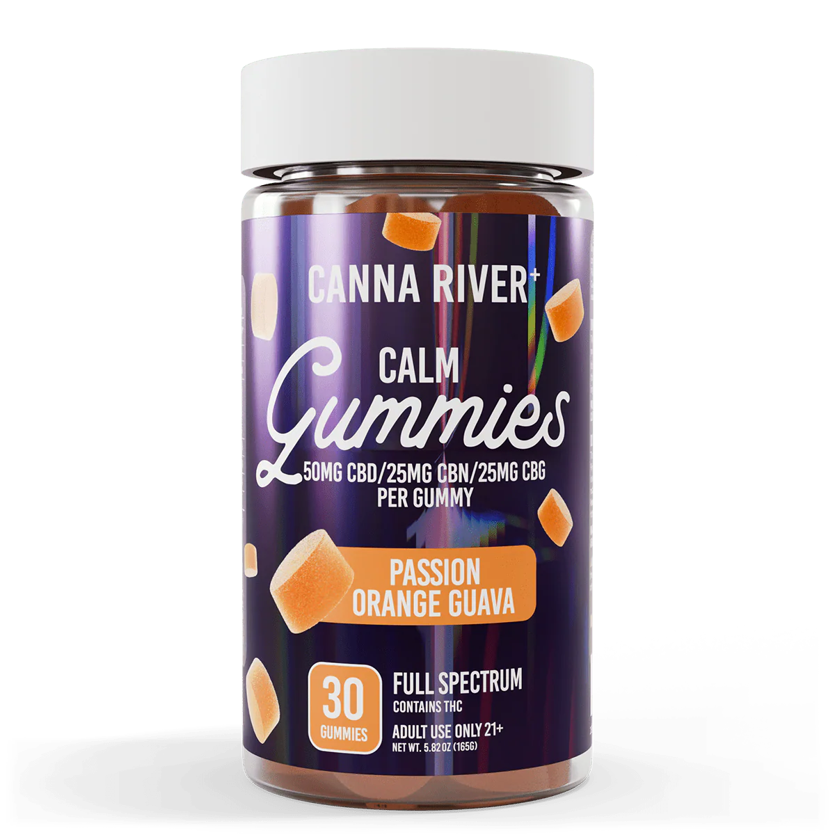 Canna River Full Spectrum Calm Gummies 50mgCBD/25mgCBN/25mg/CBG 30 gummies Passion Orange Guava
