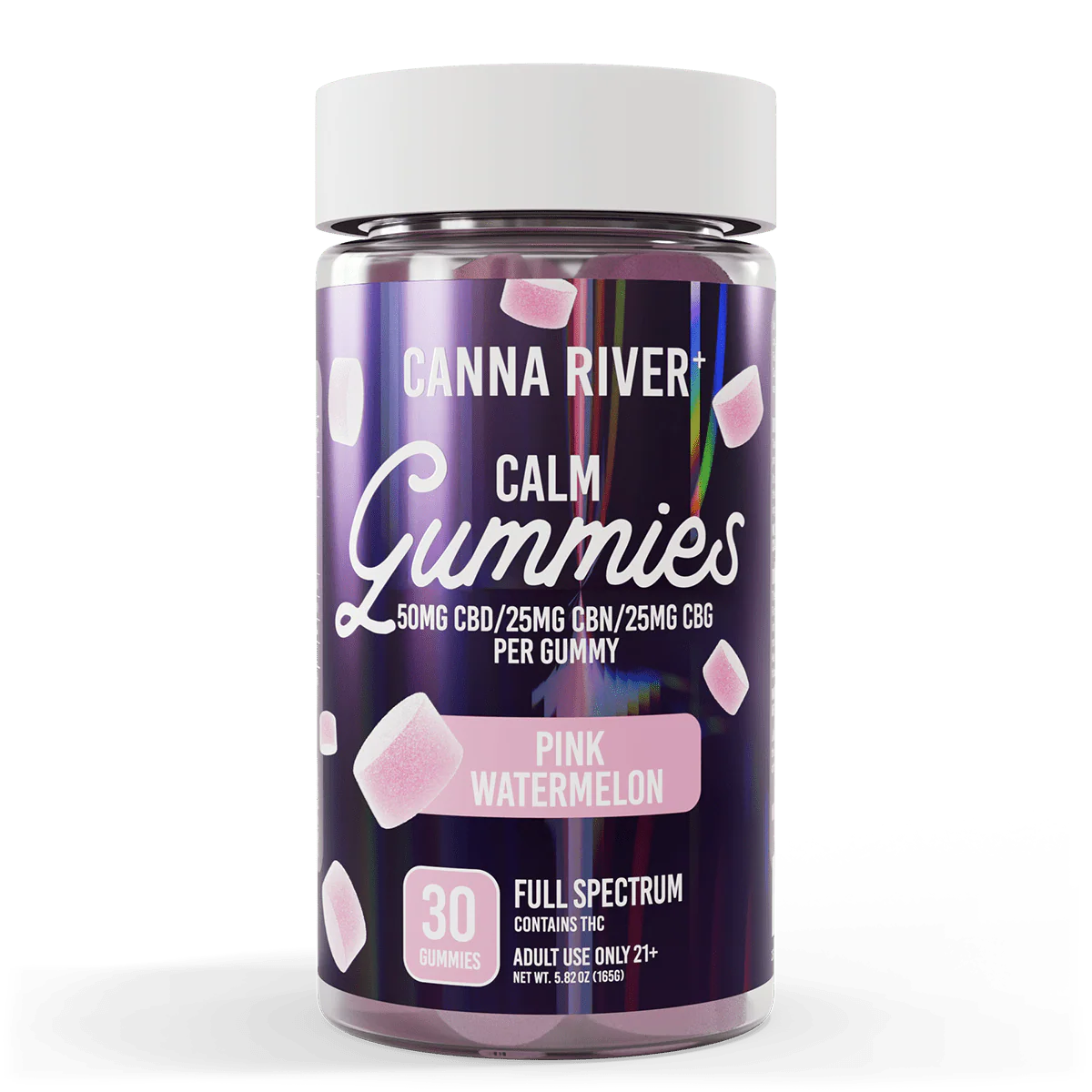 Canna River Full Spectrum Calm Gummies 50mgCBD/25mgCBN/25mg/CBG 30 gummies Pink Watermelon